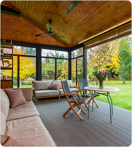 • Отличная теплоизоляция. Пластиковые окна способны удерживать тепло, что позволяет наслаждаться комфортом на веранде или террасе в холодные дни осени или ранней весны. Особенно это важно при выборе теплого профиля для круглогодичного использования.